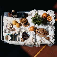wir essen nicht in gängen, sondern in wellen. ein tisch voller überraschungen. ein fest aus farben, texturen und geschmäckern. überall gibt es etwas zu entdecken – eingelegte zitronen, gebackene birnen mit gorgonzola und kandierten walnüssen, pinker hummus, oliven mit charakter. eine besondere käseauswahl oder kleine brote mit veganen cremes und antipasti. serviert direkt auf dem tisch, zum teilen, zum „probier mal das da!" sagen. für zwei, fünf, zehn oder fünfzig menschen. mezze splash ist kein menü, es ist ein moment. eine mischung aus geschenk und happening für genießer:innen. mezze splash kommt dahin, wo ihr seid – auf wunsch mit gläsern, decken und kerzenschein. bereit?
